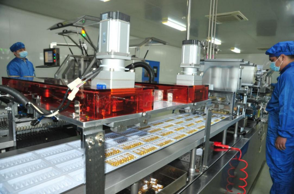 2022年底,友搏药业疏血通注射液包装线上员工工作现场